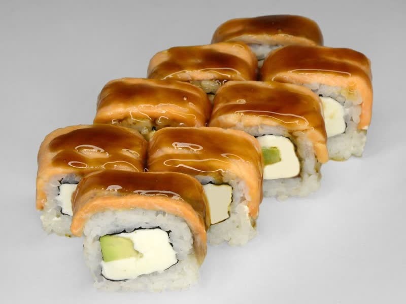 Лосось, авокадо, соус унаги, рис, сыр, нори