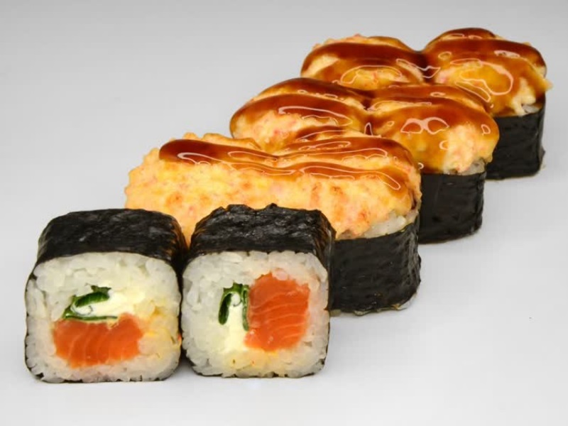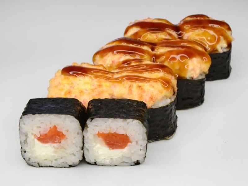 Лосось, сырный соус, соус унаги, рис, сыр, нори