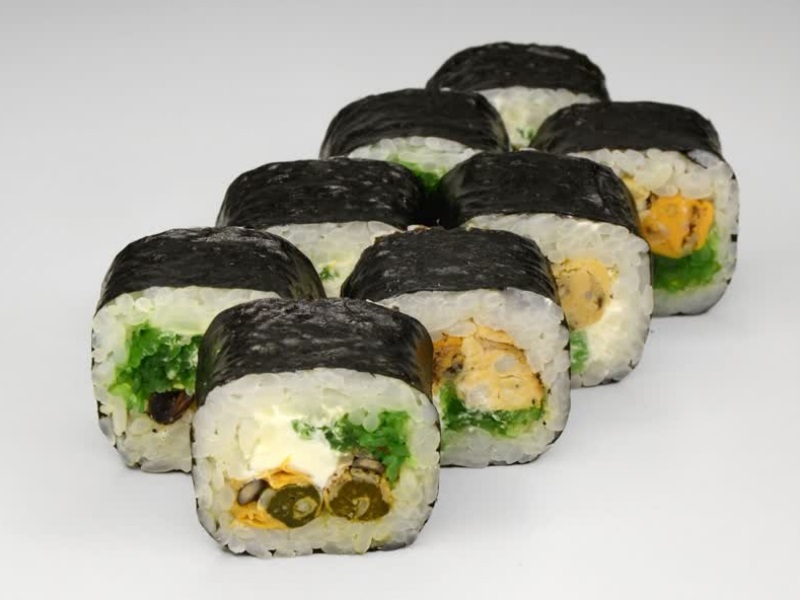 Угорь, огурец, соус унаги, рис, сыр, нори