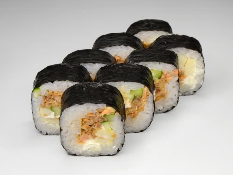 Лосось терияки, огурец, тамаго, рис, сыр, нори